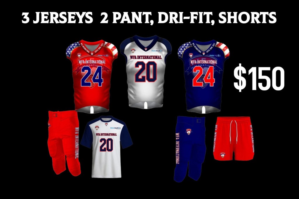 - 3 Jersey 2 Pants, Dri Fit Tshirt, Shorts-$150